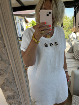 0  Tunique blanche gaze de... Prix de base 28,00 € Prix 20,00 €  Ajouter au panier Promo ! -8,00 € - 8,00 €