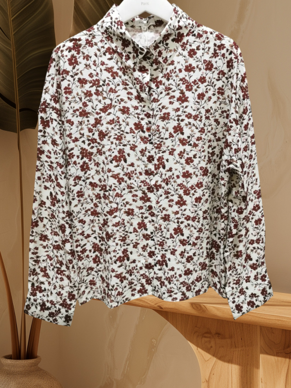 Chemise imprimée bordeaux/beige