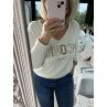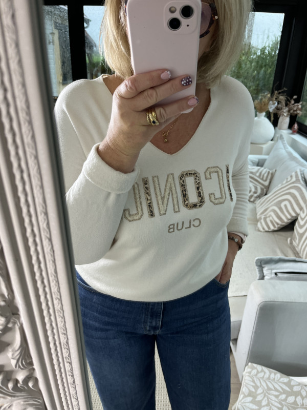 Pull fin beige imprimé Iconic, taille unique, encolure V