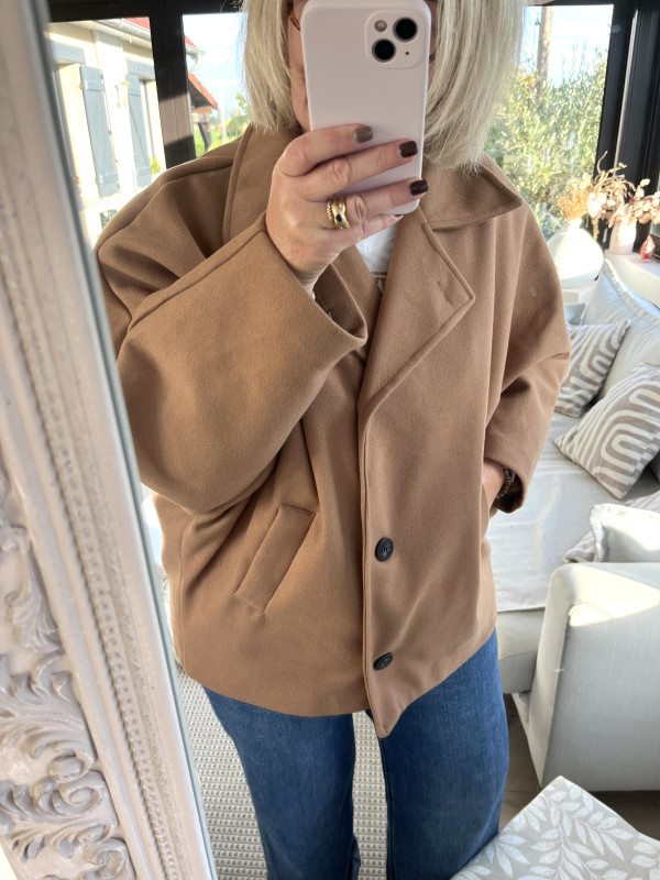 Manteau court oversize camel, 2 poches sur les cotés, taille unique