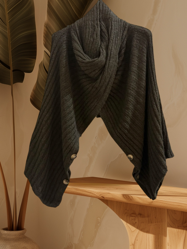 Poncho dolce vita chocolat. Sa coupe fluide et ses boutons latéraux permettent de le porter ouvert, croisé ou enroulé autour du corps.