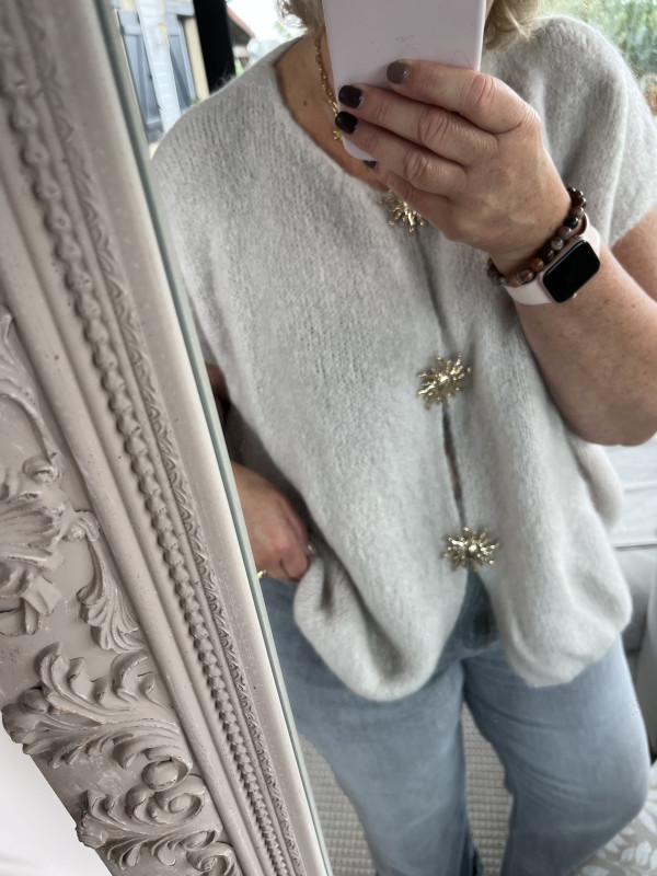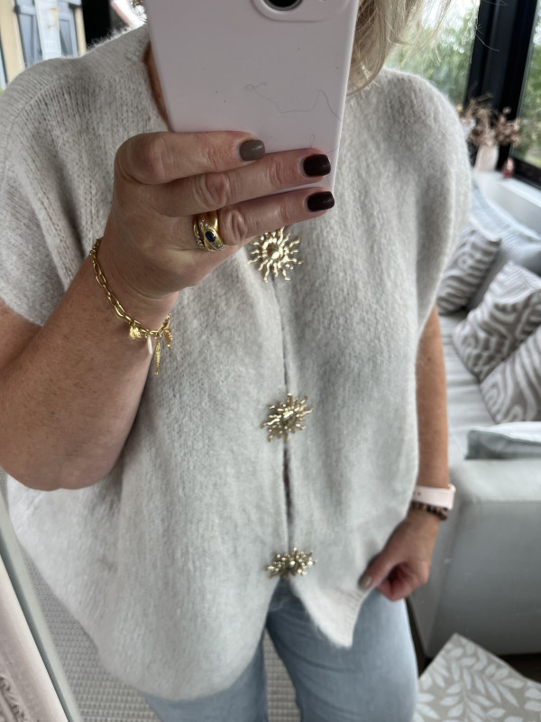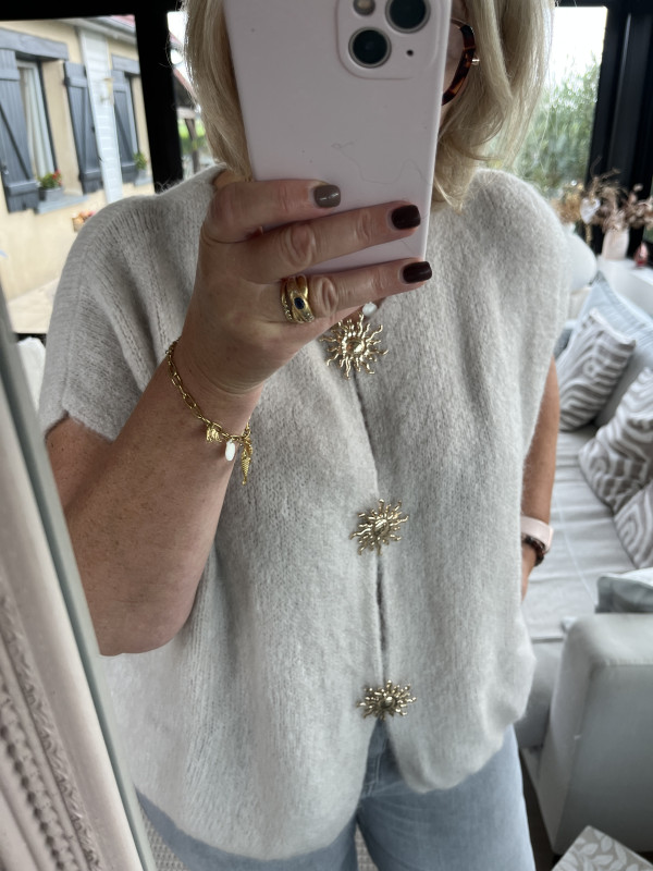 Pull sans manches beige, broches soleil amovibles, taille unique