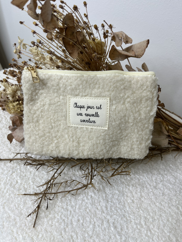 Pochette moumoute " chaque jour " écru, fermeture zip
