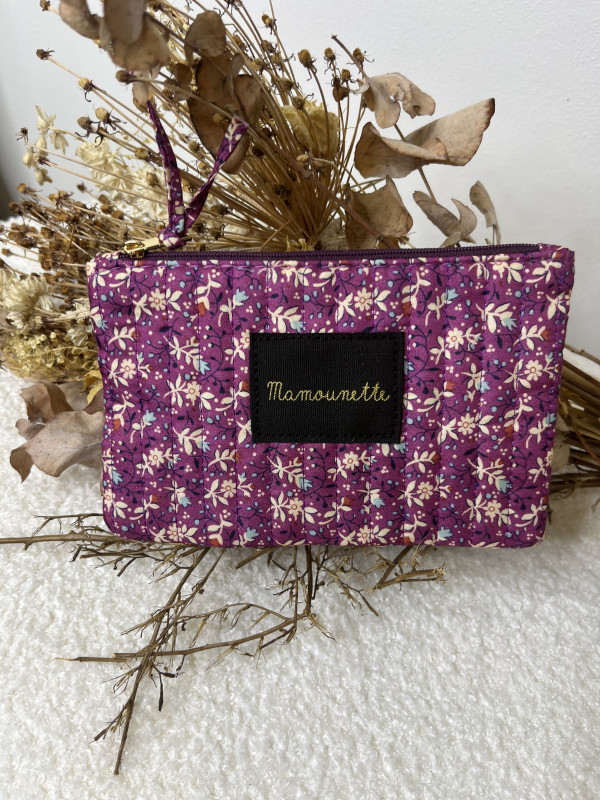 Pochette coton liberty " Mamounette " fushia, fermeture zip