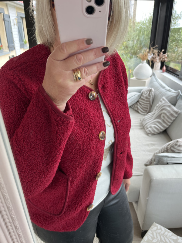 Veste mouton bordeaux, taille unique, 2 poches devant