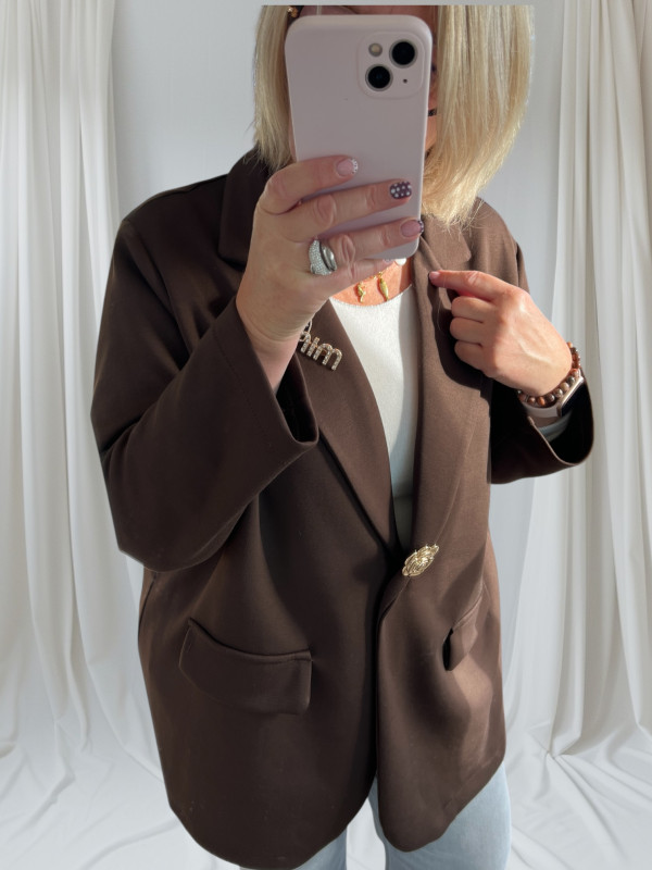 Veste blazer chocolat, détails broches amovibles, taille unique